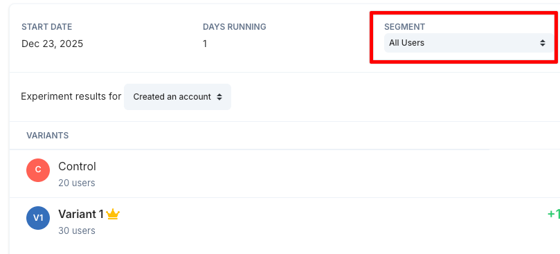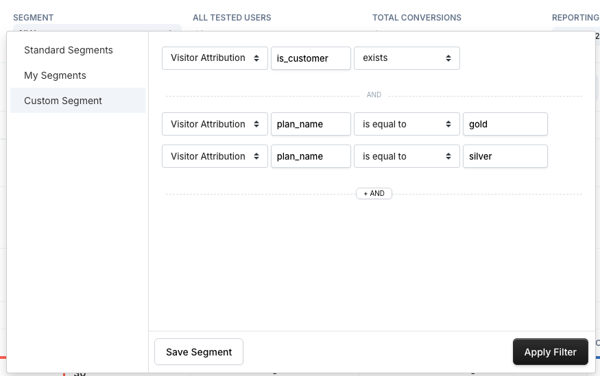 The same attributes can be used after the test in A/B test reports to filter and compare results.