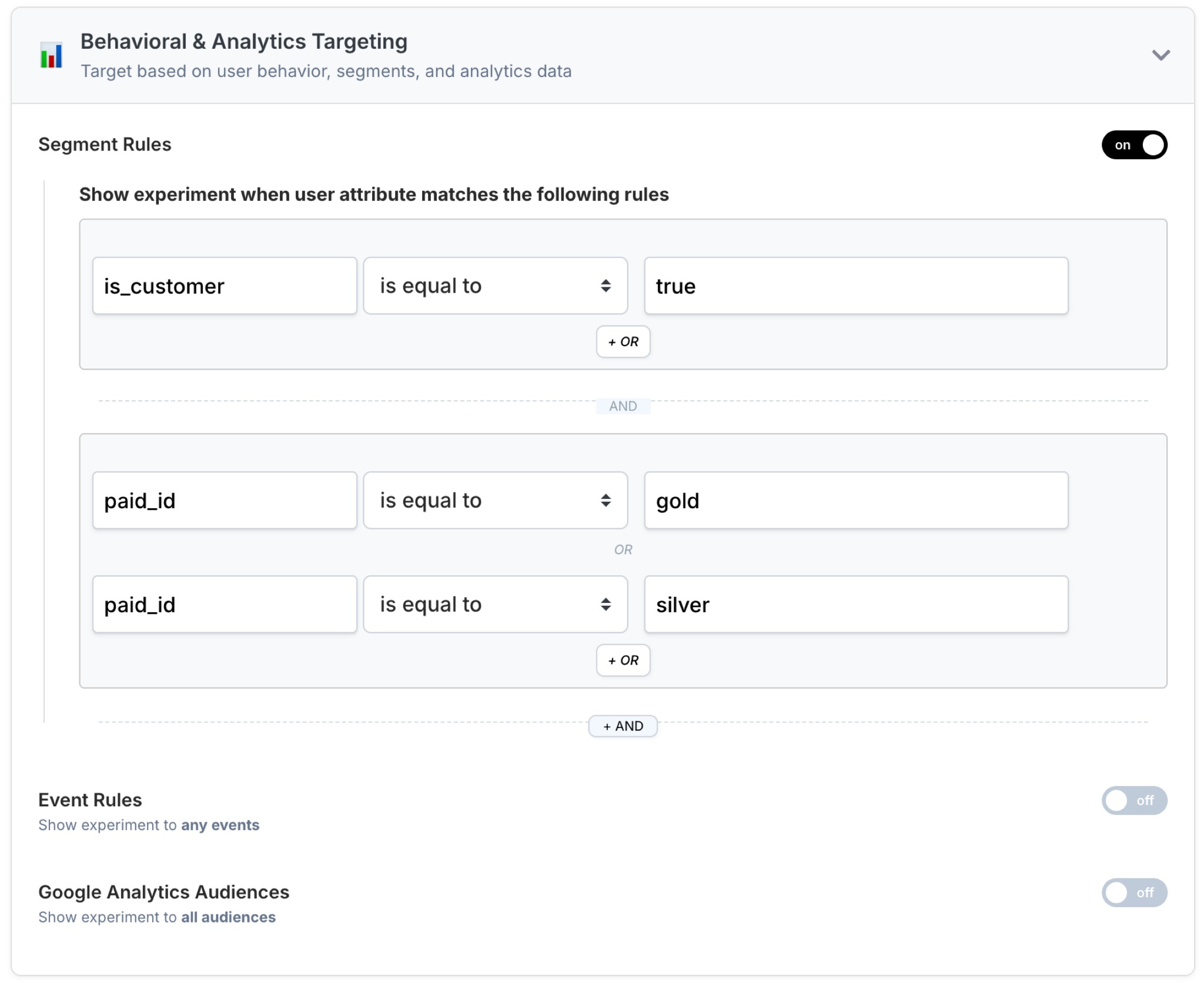 Targeting Rules → Behavior & Analytics Targeting →Segment Rules